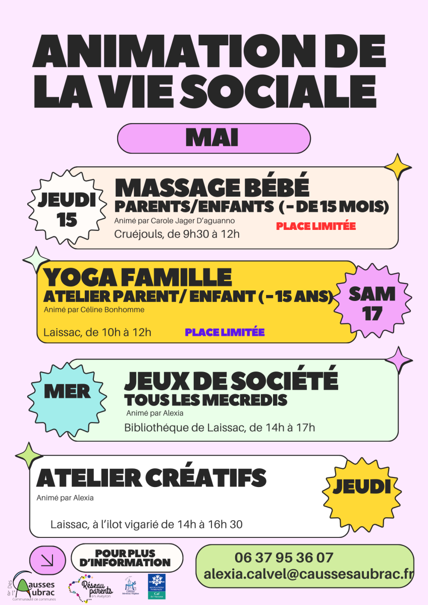 Dans une volonté de renforcer le lien entre les parents et les enfants, des ateliers ont été initiés sur le territoire du Laissagais. Ces rencontres, organisées en collaboration avec des intervenants, visent à offrir un moment de bien-être, de partage et d’échange.