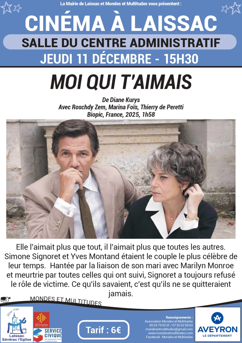 Le cinéma est de retour à Laissac avec la projection du film »Moi qui t’aimais », le jeudi 11 décembre 2025 à 15h30 au centre administratif.