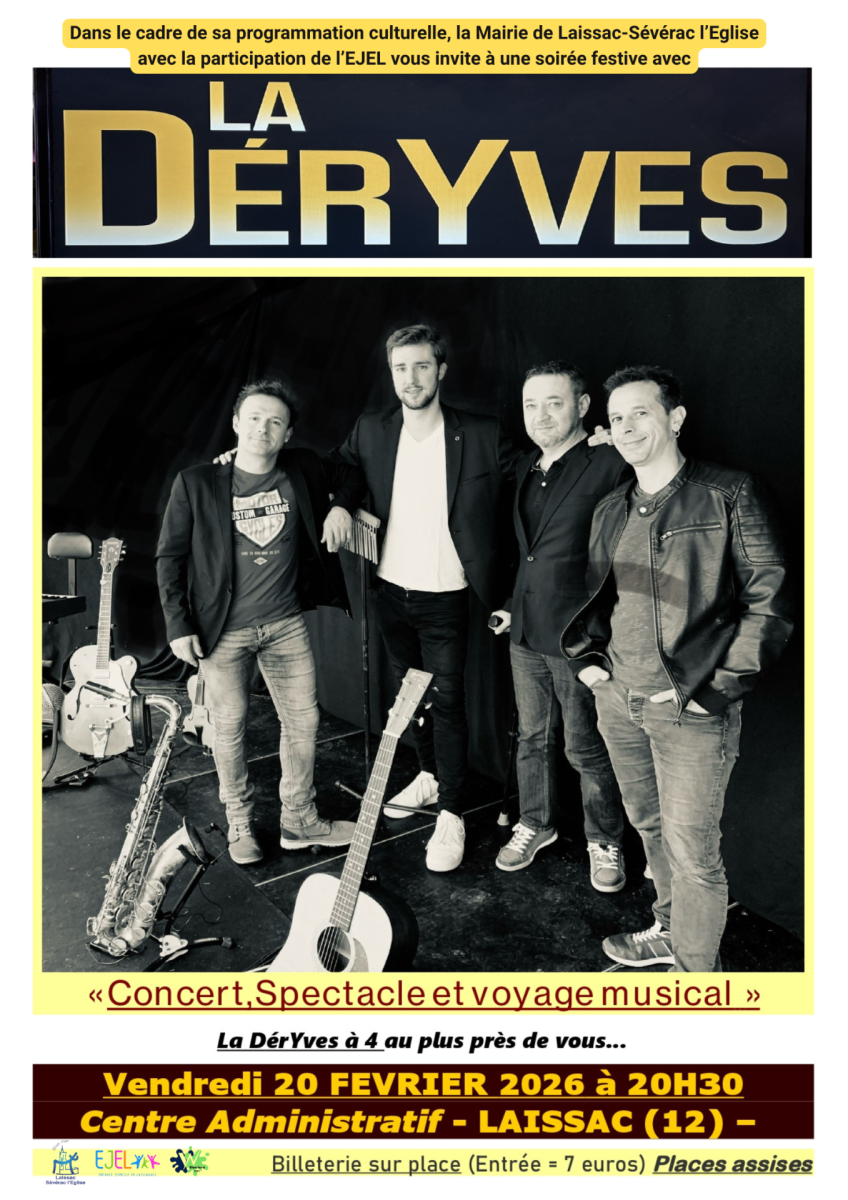 Ne manquez pas ce rdv exceptionnel qui vous est proposé le vendredi 20 février à Laissac avec le lancement de la tournée 2026 de La Deryves.