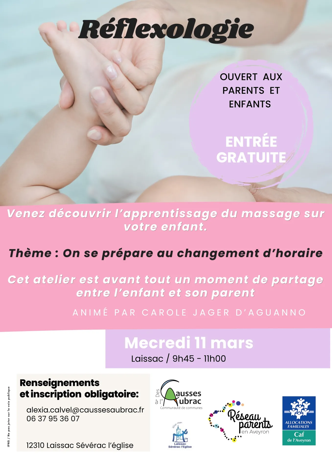 Mercredi 11 Mars de 9h45 à 10h45 : Venez découvrir l’apprentissage du massage sur votre enfant. Animé par Carole D’aguanno Jager. Sur réservation : 06 37 95 36 07