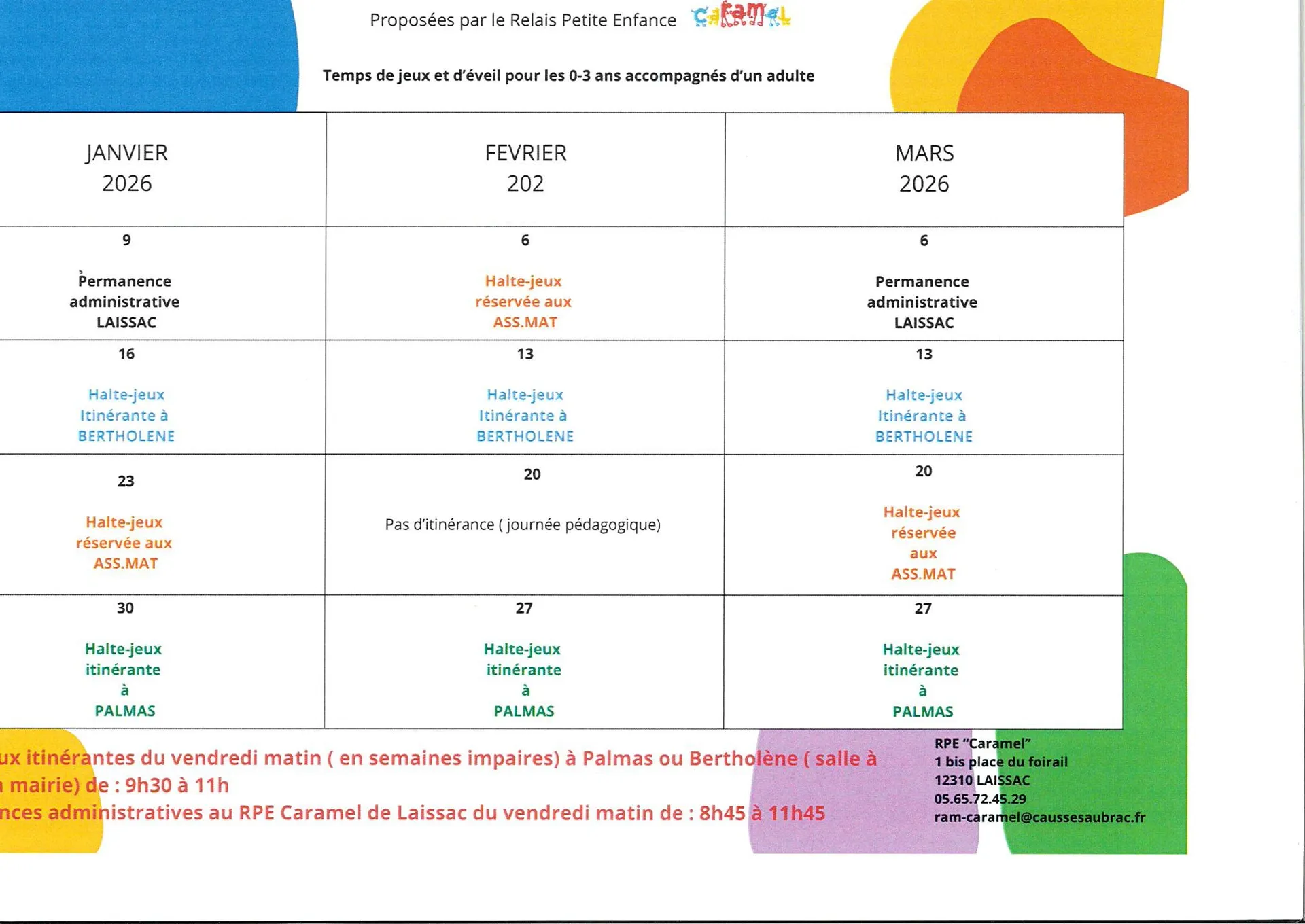 Contact : 05 65 72 45 29 ou par mail : ram-caramel@caussesaubrac.fr