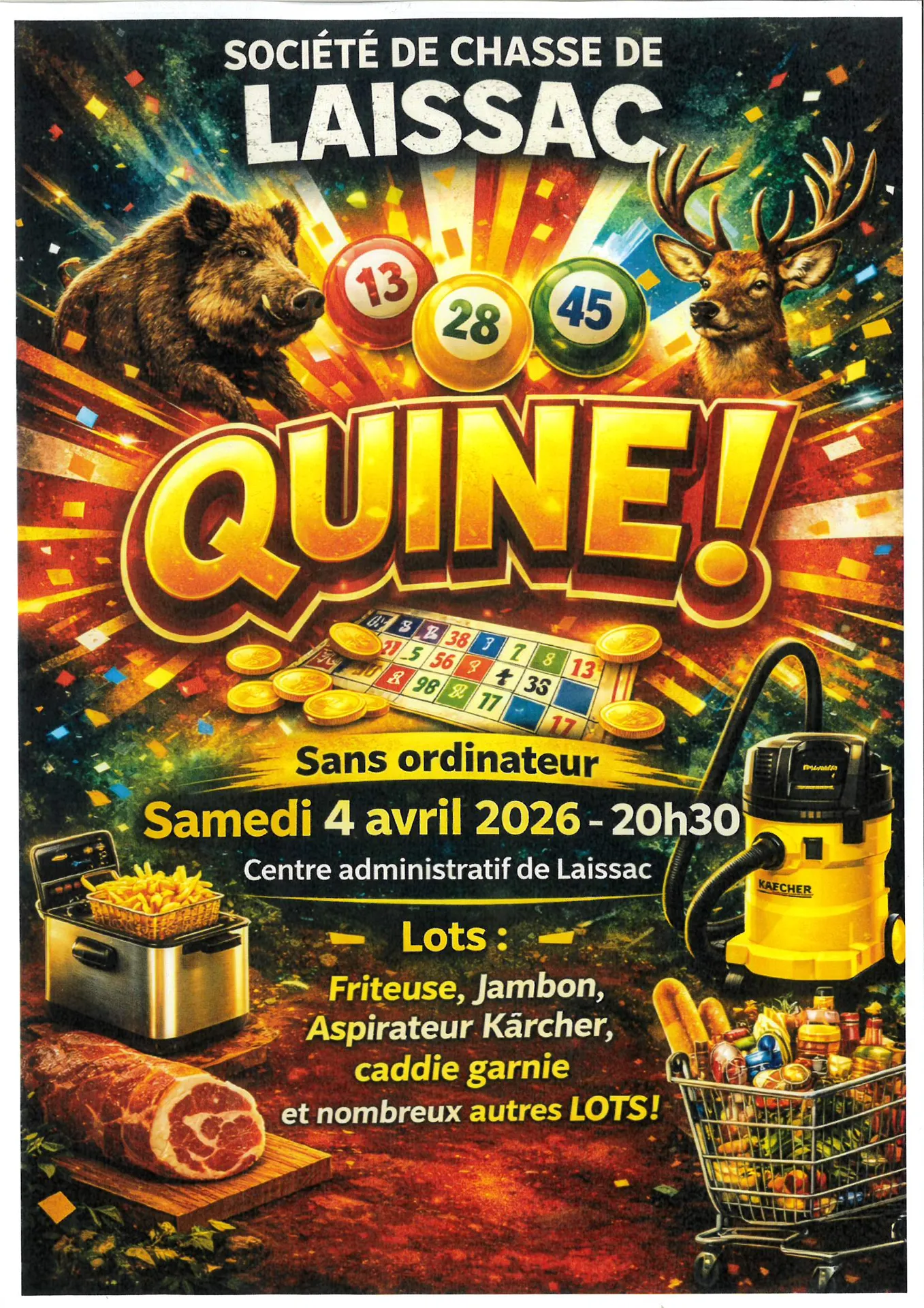 Quine sans ordinateur à partir de 20h30 au Centre Administratif.