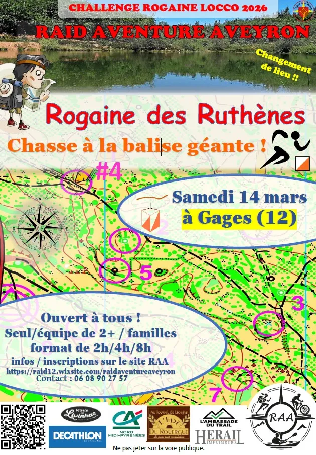 Inscriptions et renseignement sur le site suivant : https://raid12.wixsite.com/raidaventureaveyron