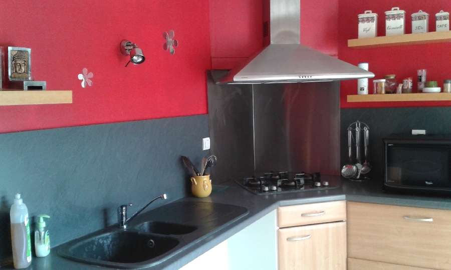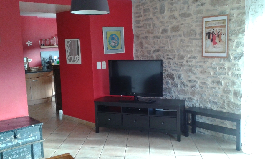 – Au rez de chaussée : séjour, salle à manger avec TV, (avec wifi), poêle bois, cuisine indépendante entièrement équipée, buanderie avec machine à laver et nécessaire de repassage, un WC.