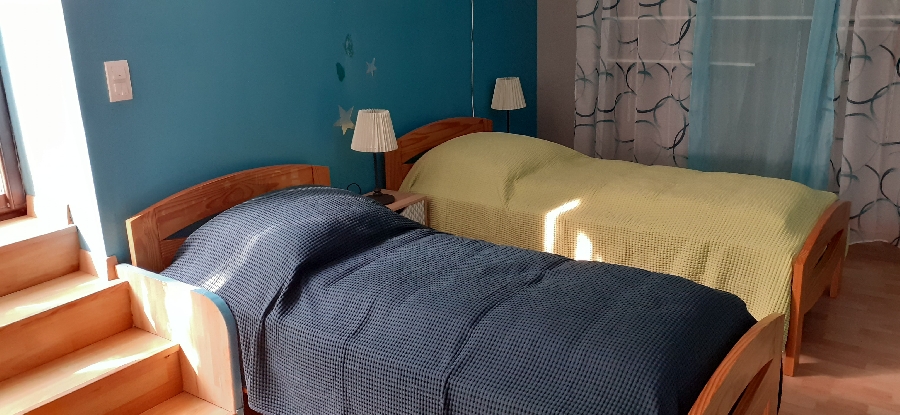 – 1 chambre avec 2 lits en 90 x 190 cm chacun et une salle d’eau WC commune à ces deux dernières chambres.