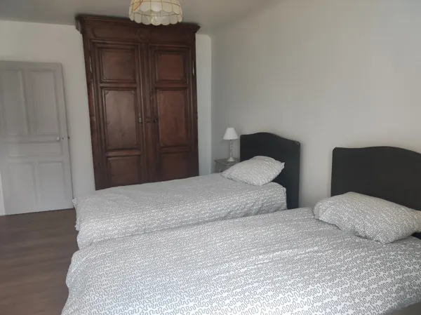 Gîte de 6 personnes comprenant une cuisine, une salle d’eau, deux WC, salle à manger et salon, et trois chambres (1 lit de 160, 1 lit de 140 et 2 lits de 90). Equipement bébé (lit, chaise haute, transat). Grand terrain attenant. Tous commerces à 2,5 km, ainsi que de nombreux équipements sportifs et activités : piscine, tennis, VTT, cyclo, rando, pêche, ….