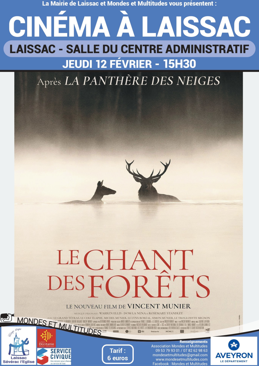 Le cinéma fait son retour à Laissac avec la projection du film LE CHANT DES FORÊTS, le jeudi 12 février à 15h30 au centre administratif de Laissac.